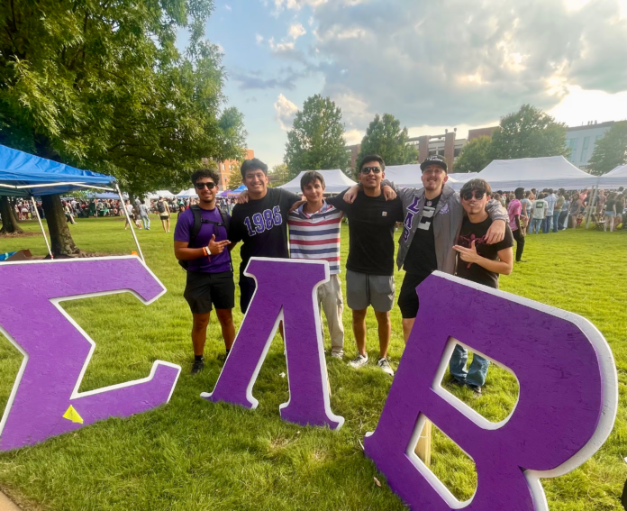 Kevin Ponce (far left) and other members of the Sigma Lambda Beta fraternity recruit members at a welcome event at the University of Alabama at Birmingham on Aug. 24, 2025. Rebecca Griesbach/AL.com